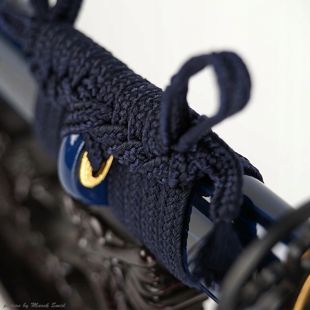 - Цука: (Ручка) Дерев’яне ядро, загорнуте в справжню шкіру з рейду (Самагава) з чорною косою - Ito. Лезо Катани забезпечено двома Мекугу (бамбукові шпильки). Ви можете демонтувати лезо від ручки, витягнувши ці шпильки. На кожній сторінці Цукі (ручки) є менукі (орнамент під косою). Чорний кінець ручки (Кашіра).
