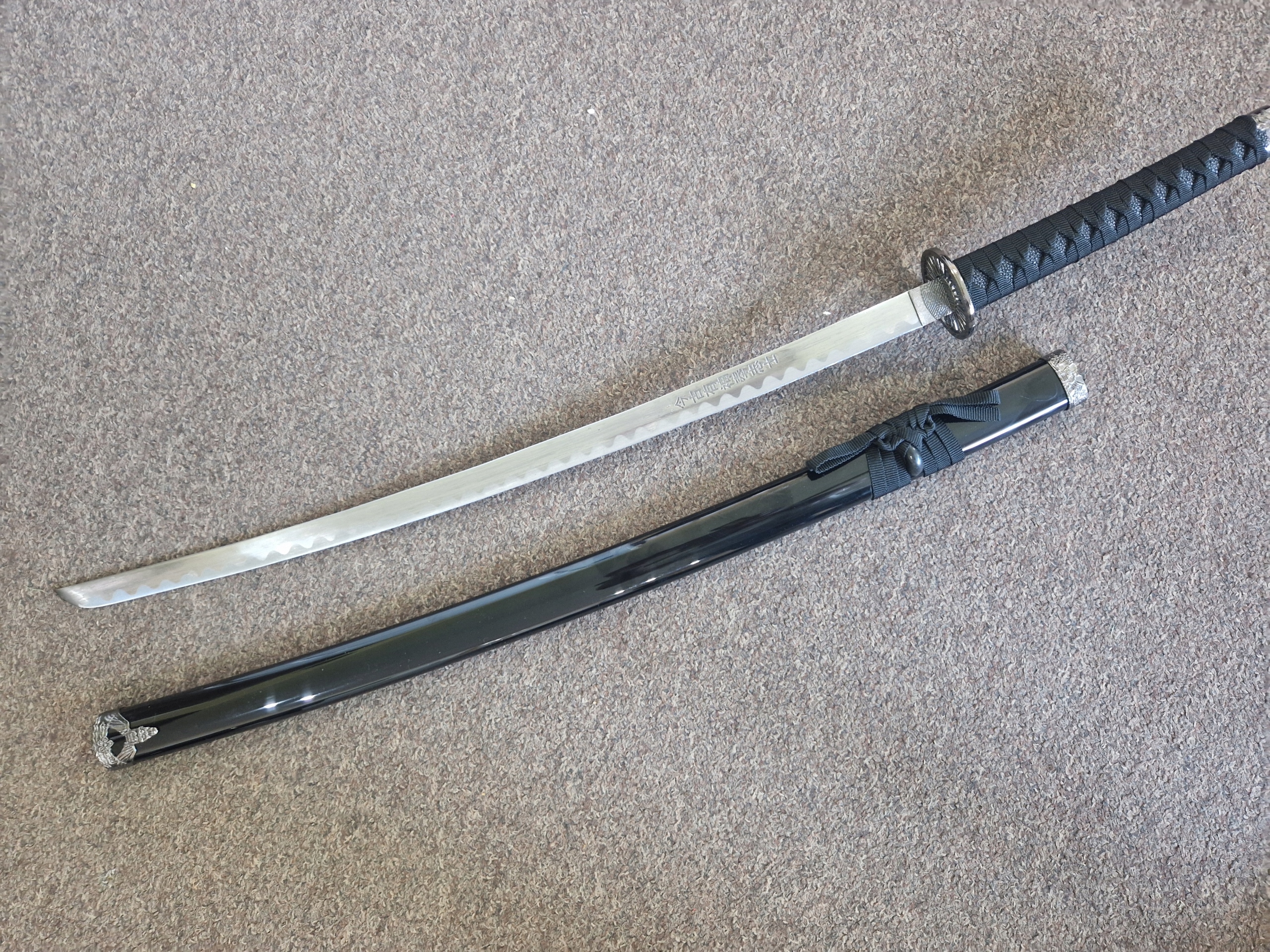 КАТАНА САМУРАЙСЬКИЙ МЕЧ СТАЛЕВИЙ З ПІХНАМИ, ЧОРНИЙ SW-68B ПОШКОДЖЕНИЙ