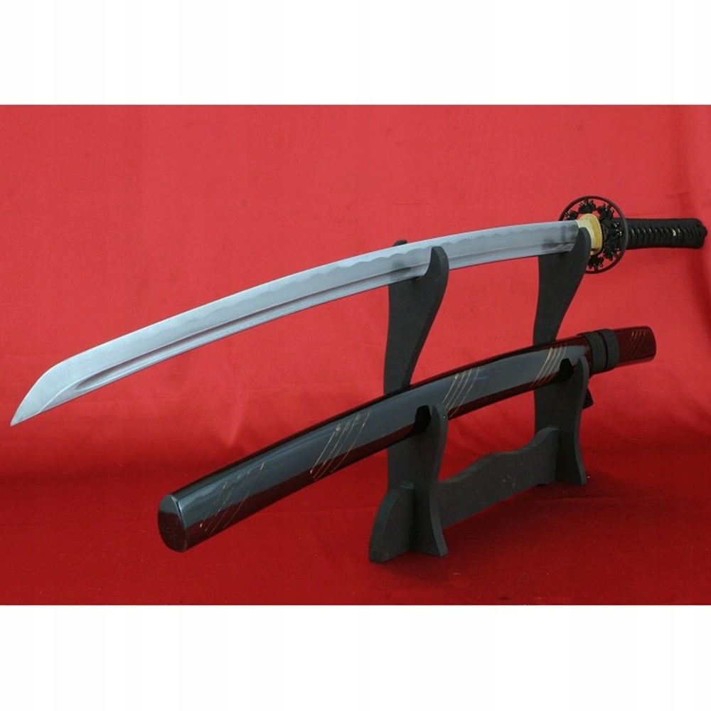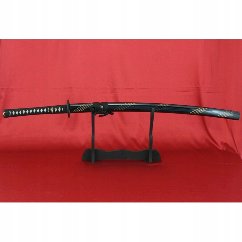 підроблений японський меч katana з відшліфованим наслідуванням загартовування (Бракона) та жолобом Бо-Хі. Гострий (ґрунтовий) самурайський меч Катани знайде своє використання як прикрасу, але також для активних вправ бойових мистецтв. Катана не підходить для скошування більш важких матеріалів. Сталь не частково хмарна (Хамон відшліфований лише) і тому має низьку твердість. Косиння жорстких матеріалів залишатимуть сліди на лезі меча. Привабливе і гостре лезо, чорне блискуче Сая плюс цука (ручка), яке покрите справжньою шкірою жало, все це робить цю катанку дуже цікавою і бажаною. Катана зберігається в полотні та паперовому коробці. Лезо Катани прикрашене відшліфованою наслідуванням лінії загартування Хамона. Компанія dellinger не несе відповідальності за збитки та пошкодження, заподіяні під час використання. Сховати катану поза досяжністю дітей! Кожне маніпулювання самурайським мечем відповідає за власною відповідальністю. Пам'ятайте, що у вас в руках фатальна зброя !