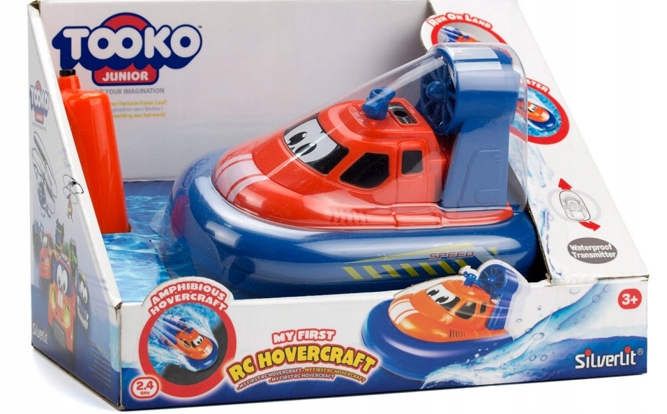- набір включає: корабель на повітряній подушці з дистанційним керуванням та дистанційне керування