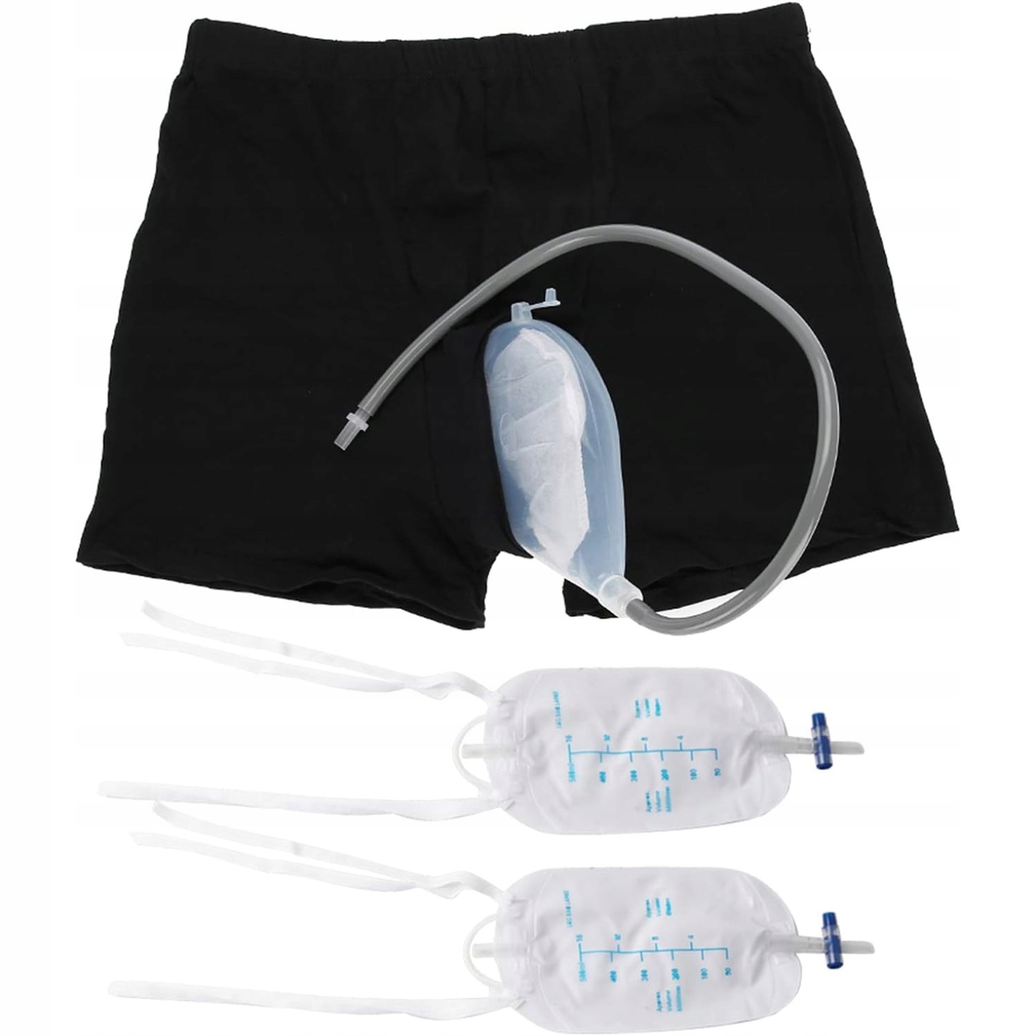 Чоловіча нижня білизна при нетриманні: носіть її як труси. Розмістіть сечовід під штанинами. Помістіть уретральний мішок на литку і прикріпіть яєчка. Завдяки нетканим матеріалам у внутрішньому контейнері для сечі ви можете вільно пересуватися і ходити, вам не страшні теплі трусики для сечі.