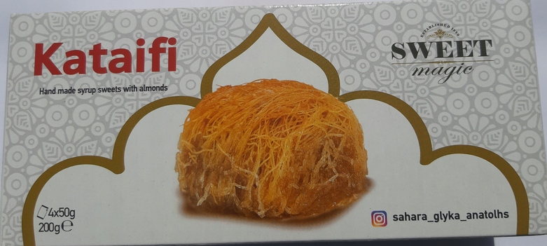 Катифі - це солодкість, яку можна знайти в багатьох кухнях на Близькому Сході та колишніх османських країнах, а також, звичайно, в Греції. Солодкість виготовляється з тіста filo і містить наповнення горіхів, зазвичай фундуки, фісташки або волосся, або мигдаль, а солодкий смак отримує з цукру або медового сиропу.