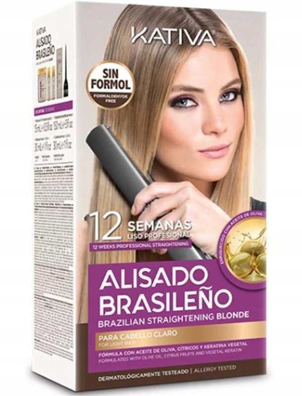 Кератиновий комплект для випрямлення волосся Brazilian Blonde Blonde призначений насамперед для темного, русявого, русявого та легкого світлого відтінку волосся дуже світлого світла або платини. Набір складається з 4 косметики, що дозволяє згладити волосся та зменшити Frizz, а також забезпечити їм кращу регенерацію, зміцнення та надання блиску. Елементи, що містяться в наборі, дозволяють проводити одну процедуру, ефект якої може зберігатися до 12 тижнів. Бразильська прямолінійна блондинка Kativa Brazilian Blonde Cite Cit Kativa Kativa Brazilian складається з професійної косметики та додаткових елементів, завдяки якому ми будемо робити всеосяжне догляд за ними.
