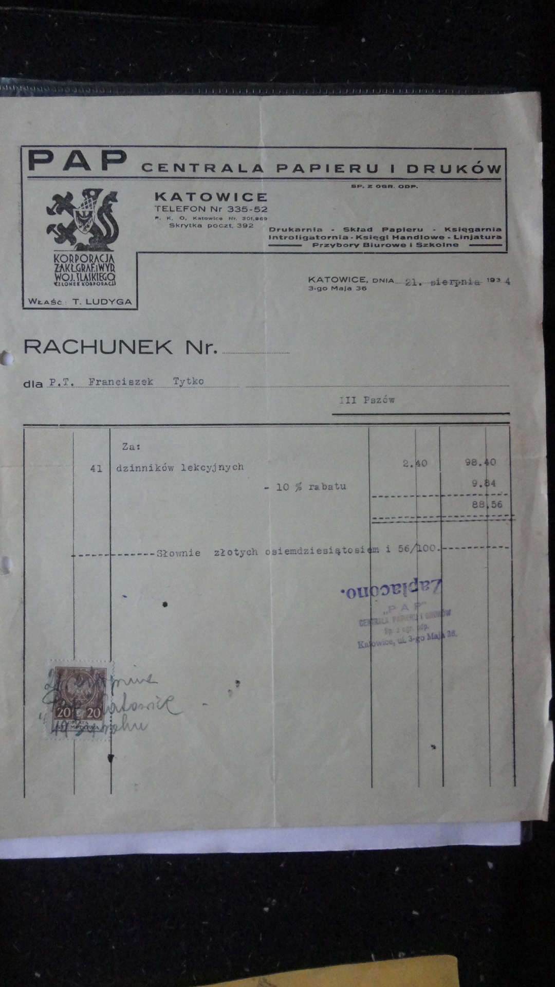 КАТОВІЦЬКИЙ ПАПІР І ДРУКАРНЯ ЦЕНТРАЛЬНИЙ БІЛЬШИЙ МЕРЧНИЙ ЗБІР 1934
