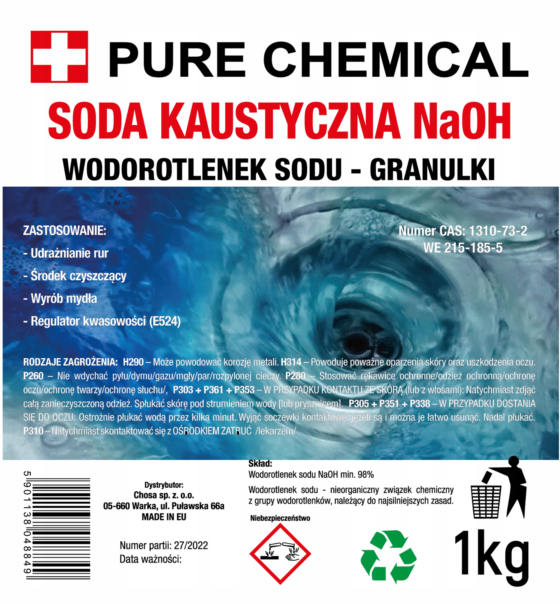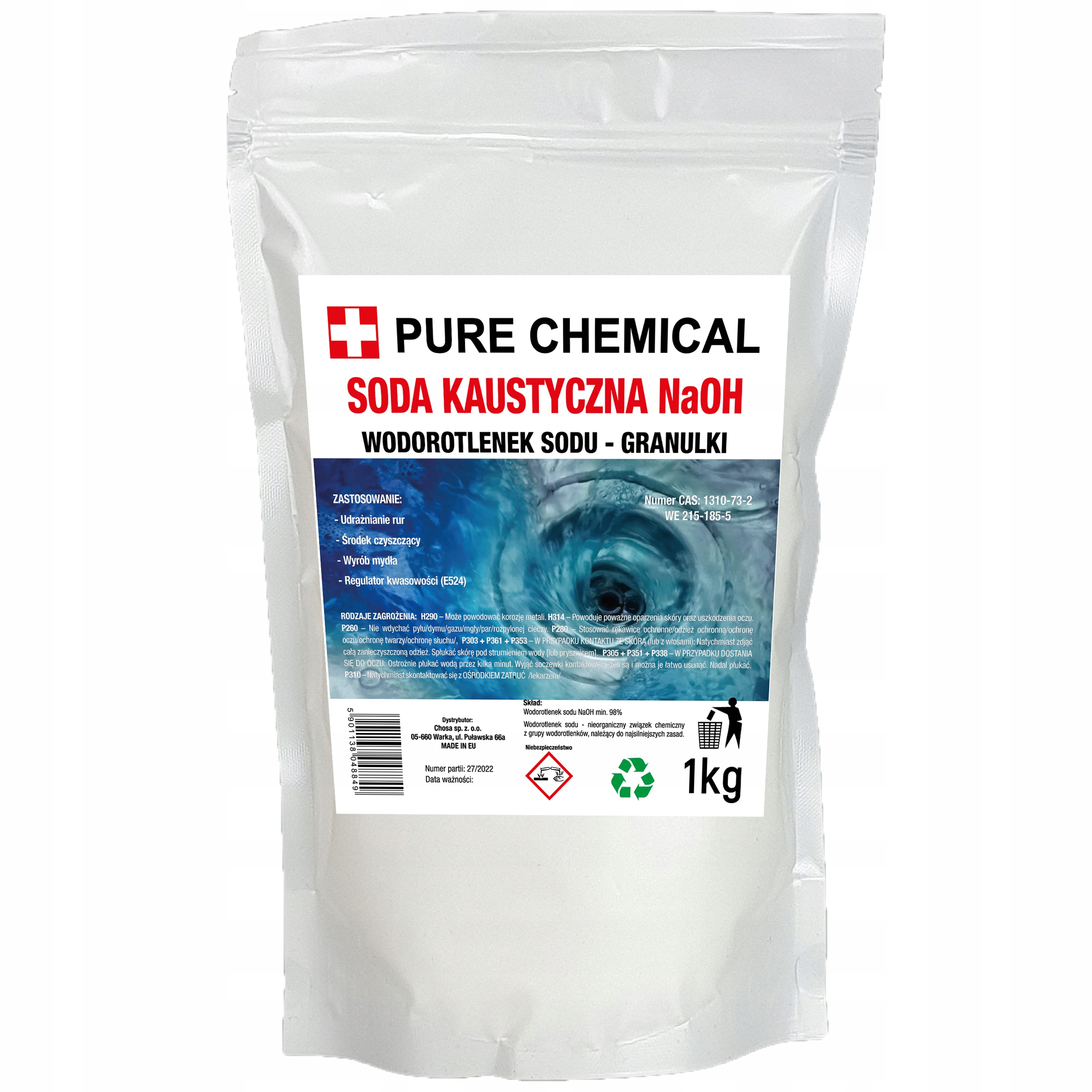 - Інгредієнти: 100% гідроксид натрію