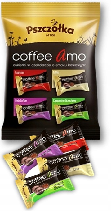 Цукерки, де любителі кави закохуються без пам’яті. Шоколад, покритий цукерками, спокушає чотири унікальними смаками: сильним ароматом чорного еспресо, м'яким, молочним латте, ароматними капучино -горіхами та інтенсивним ірландським кафе з помітним натяком на алкоголь. Всі смачні та унікальні.