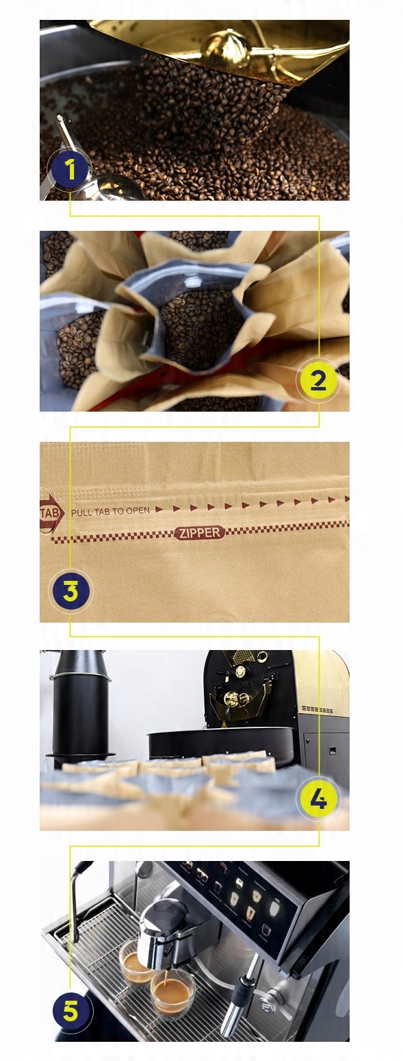 Зерна вивільняють вуглекислий газ, який утворюється під час смаження, але наша упаковка має зворотний клапан, який дозволяє каві дегазуватись природним шляхом . Завдяки застібці-блискавці упаковку можна відкривати та закривати багато разів, не розсипаючи зерна - це ідеальне рішення для зберігання кави вдома або взяти її з собою в подорож. Плоска ніжка дозволяє надійно розташувати упаковку, тому вона не перекинеться навіть на кухонну стільницю.