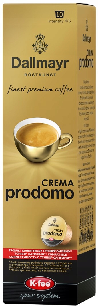 Dallmayr Crema Prodomo капсули - чудовий вибір для любителів вишуканого смаку кави. Виготовлений з найвищої якісної квасолі арабіки, з найкращих плантацій Південної Америки та Ефіопії, пропонують багатий аромат та оксамитовий крема. Завдяки делікатному курінню, кава зберігає свої природні фрукти та квіткові нотки, забезпечуючи унікальні смакові відчуття.