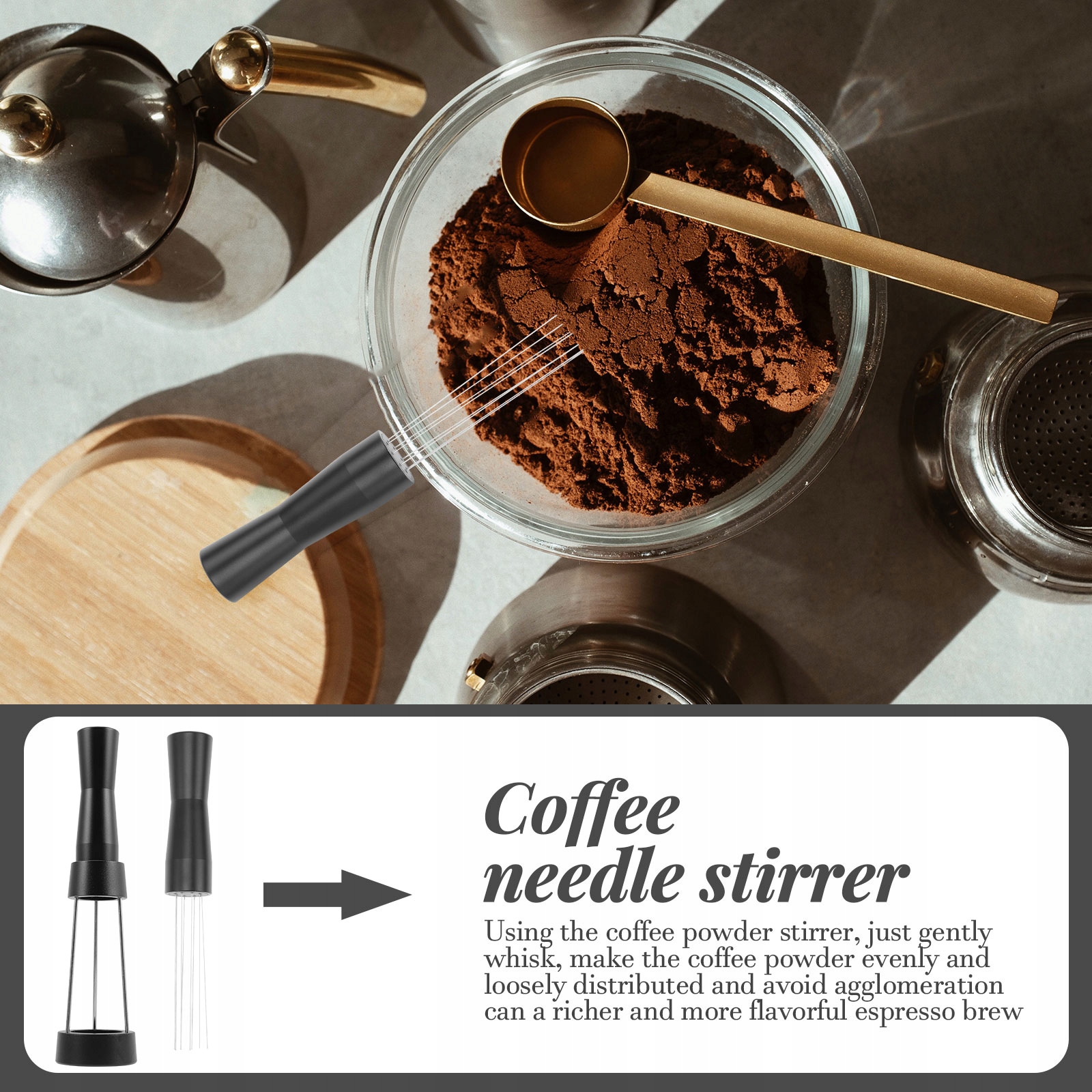 ✅Призначена для більш рівномірного перемішування меленої кави, уникаючи агломерації, щоб приготувати більш м’який і смачний еспресо.