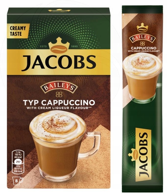 Оплачивая «КАВА JACOBS CAPPUCCINO BAILEYS 13,5г 8 шт.», вы можете быть уверены, что данное изделие из каталога «Капучино» будет доставлено из Польши и проверено на целостность. В цене товара, указанной на сайте, учтена доставка из Польши. Внимание!!! Товары для Евросоюза, согласно законодательству стран Евросоюза, могут отличаться упаковкой или наполнением.