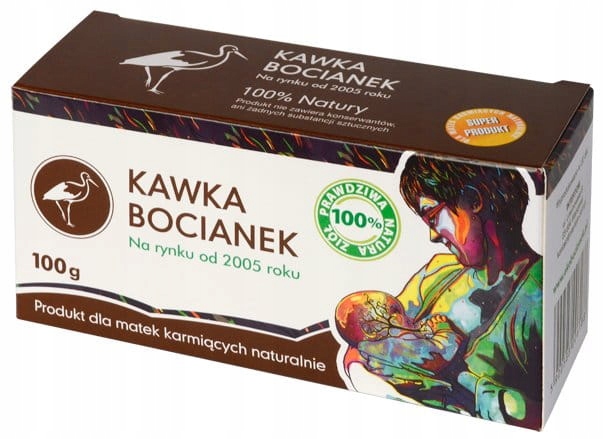 Kawka Bocianek від Dary Natury (донедавна продавався лише Medela) — це суміш трав, створена з урахуванням особливих потреб матерів, які годують грудьми. Він на 100% натуральний, виготовлений з органічних інгредієнтів, не містить консервантів та будь-яких штучних речовин. Кава є безпечною та здоровою заміною натуральної кави. Більшість рослин, які використовуються для його виробництва, були зібрані вручну з дикої природи в спеціальній екологічній зоні, де не використовуються штучні добрива та хімічні засоби захисту рослин. Він підтримує процес лактації та забезпечує багатьма необхідними вітамінами, мікро- та макроелементами, а також полегшує травлення матері та дитини. Kawka Bocianek – це смачний і простий у приготуванні напій, який допомагає задовольнити підвищену потребу в рідині та мінералах під час грудного вигодовування.