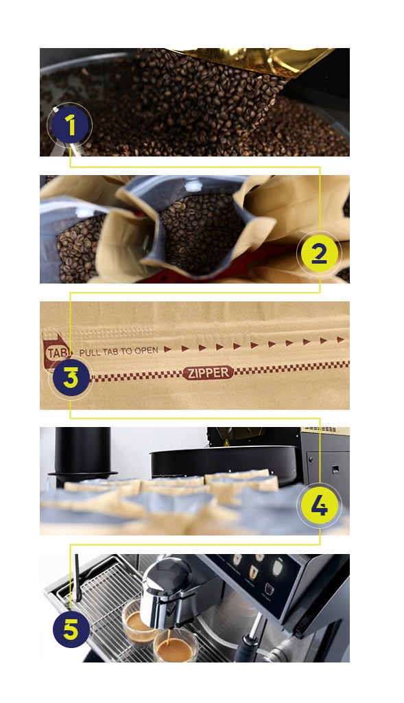 Зерна вивільняють вуглекислий газ, який утворюється під час смаження, але наша упаковка має зворотний клапан, який дозволяє каві дегазуватись природним шляхом . Завдяки застібці на блискавку упаковку можна відкривати і закривати багато разів, не розливаючи вміст - це ідеальне рішення для зберігання кави вдома або взяти її з собою в подорож. Плоска ніжка дозволяє надійно розташувати нашу упаковку, тому вона не перекинеться навіть на кухонну стільницю.