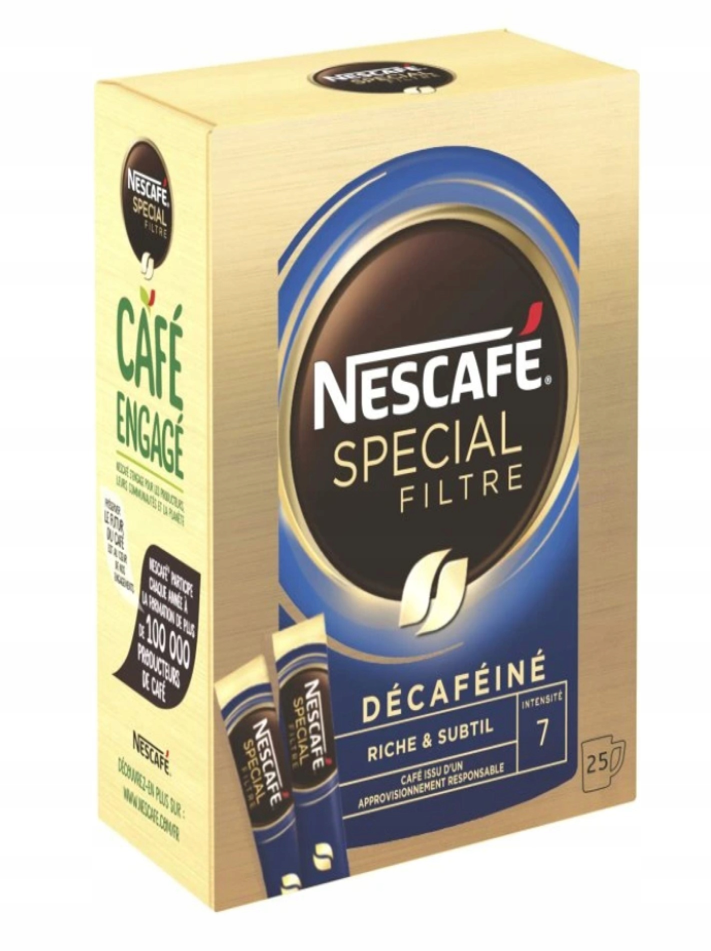 Nescafé Special Filtre Décaféiné — це ніжна та смачна кава інтенсивності 7, ідеальна для любителів кави, які хочуть зменшити споживання кофеїну, але не хочуть втратити насичений смак справжньої кави. Виготовляється з кавових зерен найвищої якості, які пройшли делікатну фільтрацію та декофеїн, завдяки чому зберігає свій повний смак.