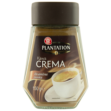 Пропозиція ПЛАНТАЦІЯ також включає розчинну каву, популярну завдяки Завдяки своєму смаку та зручності заварювання кава Crema характеризується густою оксамитовою піною або ідеальною сумішшю для створення ніжного капучіно.