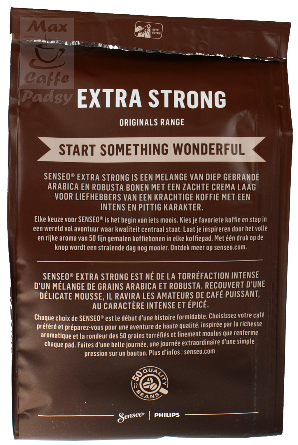 Extra Strong -це довга смажена, дуже інтенсивна позиція з усієї серії класичного Senseo. Він характеризується надзвичайно виразним смаком. Це сніданок, стимулюючи людей, які шукають сильні акценти в каві.