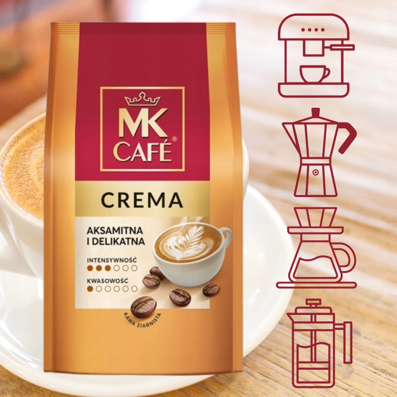 MK Cafe Crema, завдяки своєму універсальному характеру, добре підходить як для інтенсивного еспресо, так і для кава з молоком, наприклад капучіно або латте макіато.
