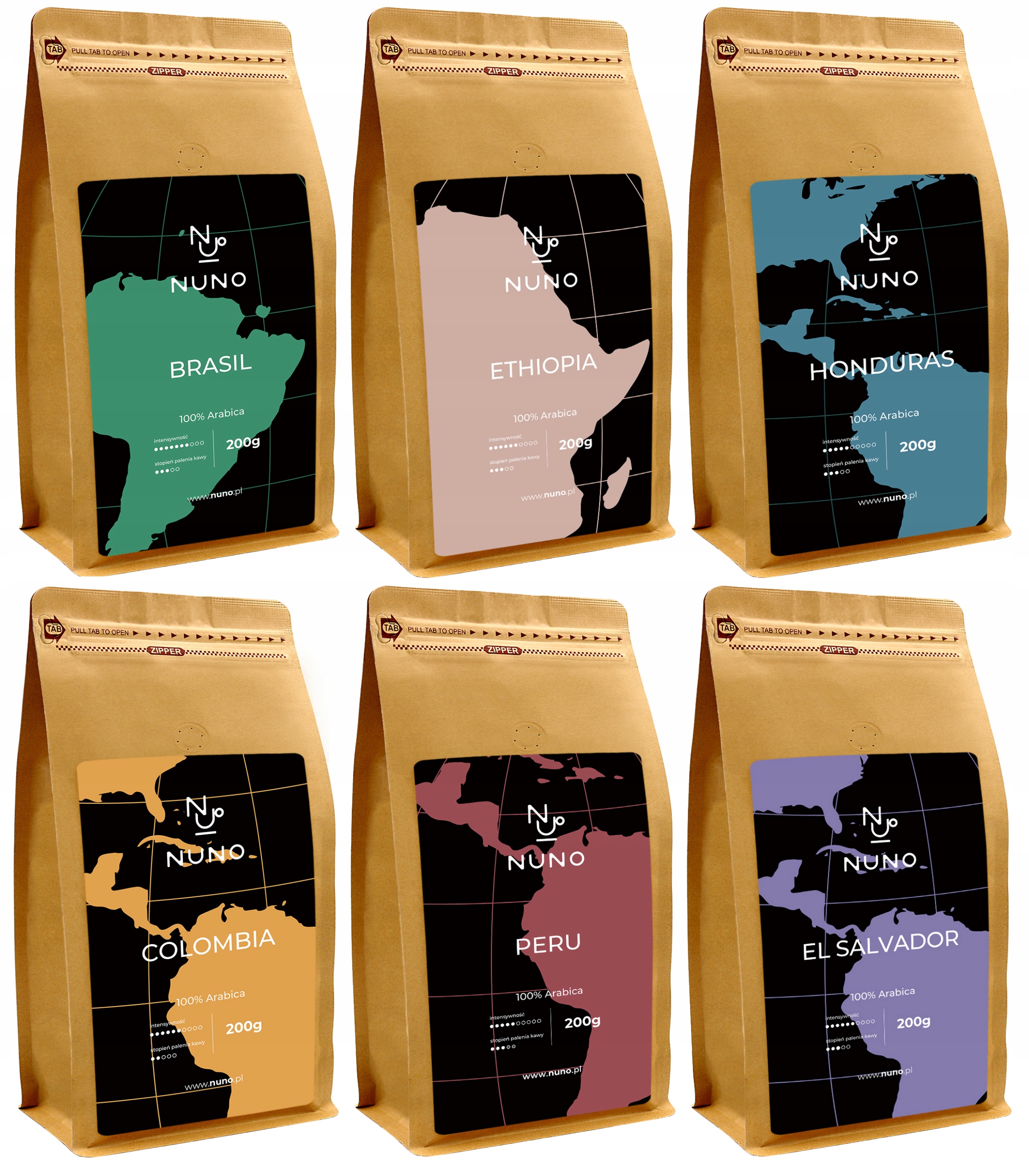 КАВА В ЗЕРНАХ NUNO СВІЖЕ ОБсмажене 72H НАБІР 6X200
