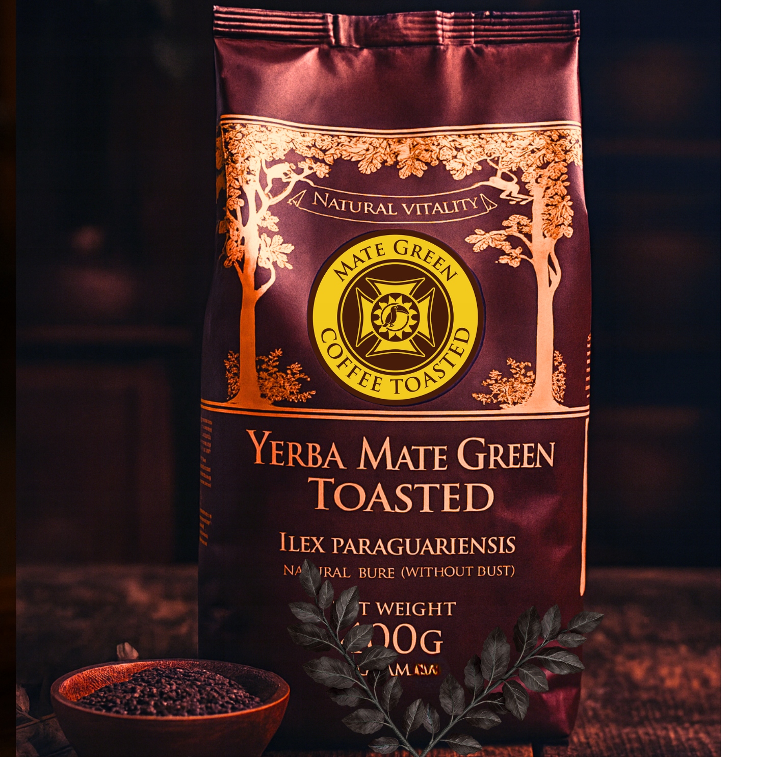 Yerba Mate Green Toasted – це унікальний смажений сорт бразильської йерба мате – справжньої королевої серед настоїв. Виготовляється з найкращого листя парагвайського падуба з тінистих плантацій у штаті Парана, де рослини розвиваються повільно, набуваючи повного аромату та сили. Завдяки спеціальному процесу обсмажування йерба набуває неповторного смаку та аромату, який захоплює своєю глибиною та тонкою ноткою какао та смажених бобів.