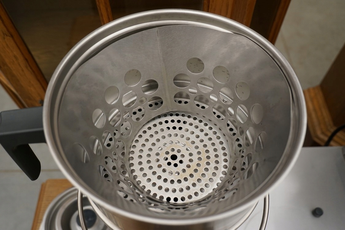 У стовпці пивоваріння 2 нагріті термози (5 л кожен) з нержавіючої сталі VHG, кошиків фільтрів, основи та крапельниці. 1 Система заварювання.