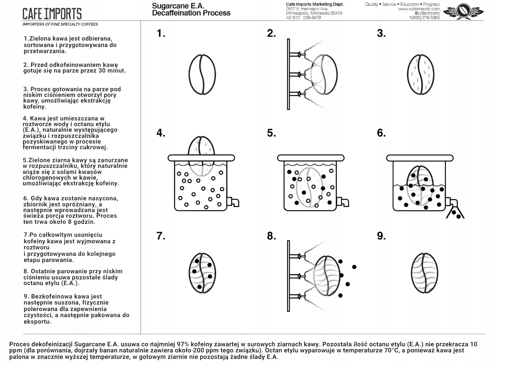 У цій каві кофеїн видаляється за допомогою природного етилацетату (ЕА), отриманого з цукрової тростини - звідси й назва Процес обробки цукрової тростини. Це один із найчистіших і найцінніших методів декофеїнізації у світі спеціальної кави, оскільки він не маскує смак і не руйнує структуру зерен.