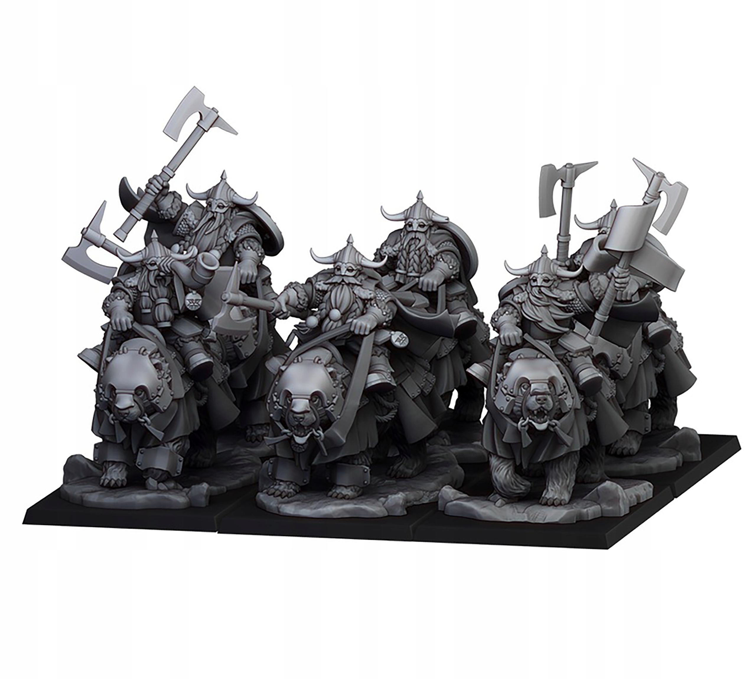 Предметом пропозиції є набір зп'яти моделей Dwarf Bear Cavalry CMD від Highlands Miniatures, надрукованих на 3D-принтері за допомогою Технологія SLA.