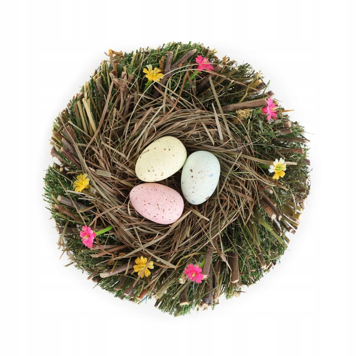 Головний убір Кавілла прекрасно підкреслить великодній клімат у внутрішній частині вашого будинку. Зроблено з гілочок, він нагадує пташине гніздо, в якому 3 барвисті яйця розміщуються з чорними плямами. Склад гілків збагачується елементами сухої трави, жовтими та рожевими квітами та мохом, які додають йому веселий весняний акцент.
