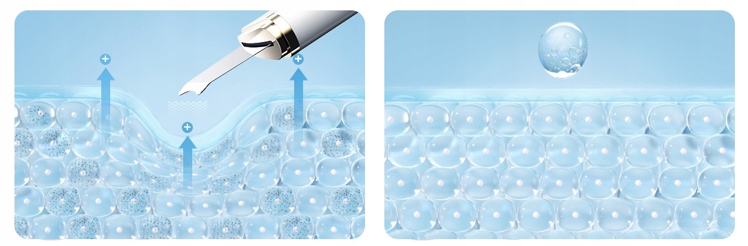 - Технологія ультразвукового іонофорезу покращує поглинання засобів догляду за шкірою, дозволяючи поживним речовинам досягати шару дерми та глибоко живити шкіру.