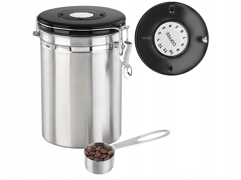 Повертайте колесо календаря, щоб записати, наприклад, дату відкриття кавових зерен. Завдяки цьому ви завжди знатимете, чи потрібно замінити збережену каву. Банка з нержавіючої сталі підходить не тільки для зберігання меленої кави або свіжих зерен, а й чаю, какао-порошку, спецій і багато іншого.