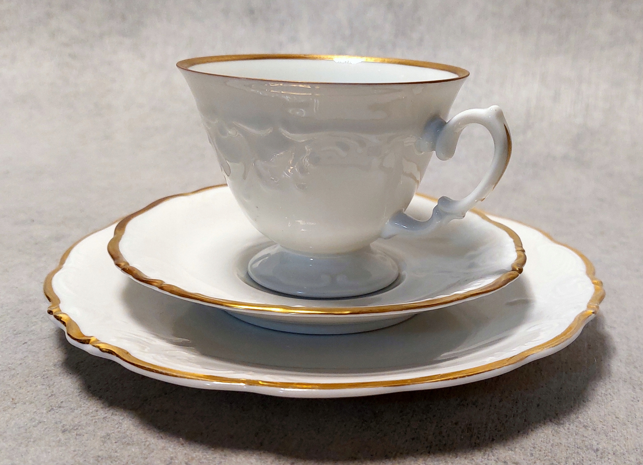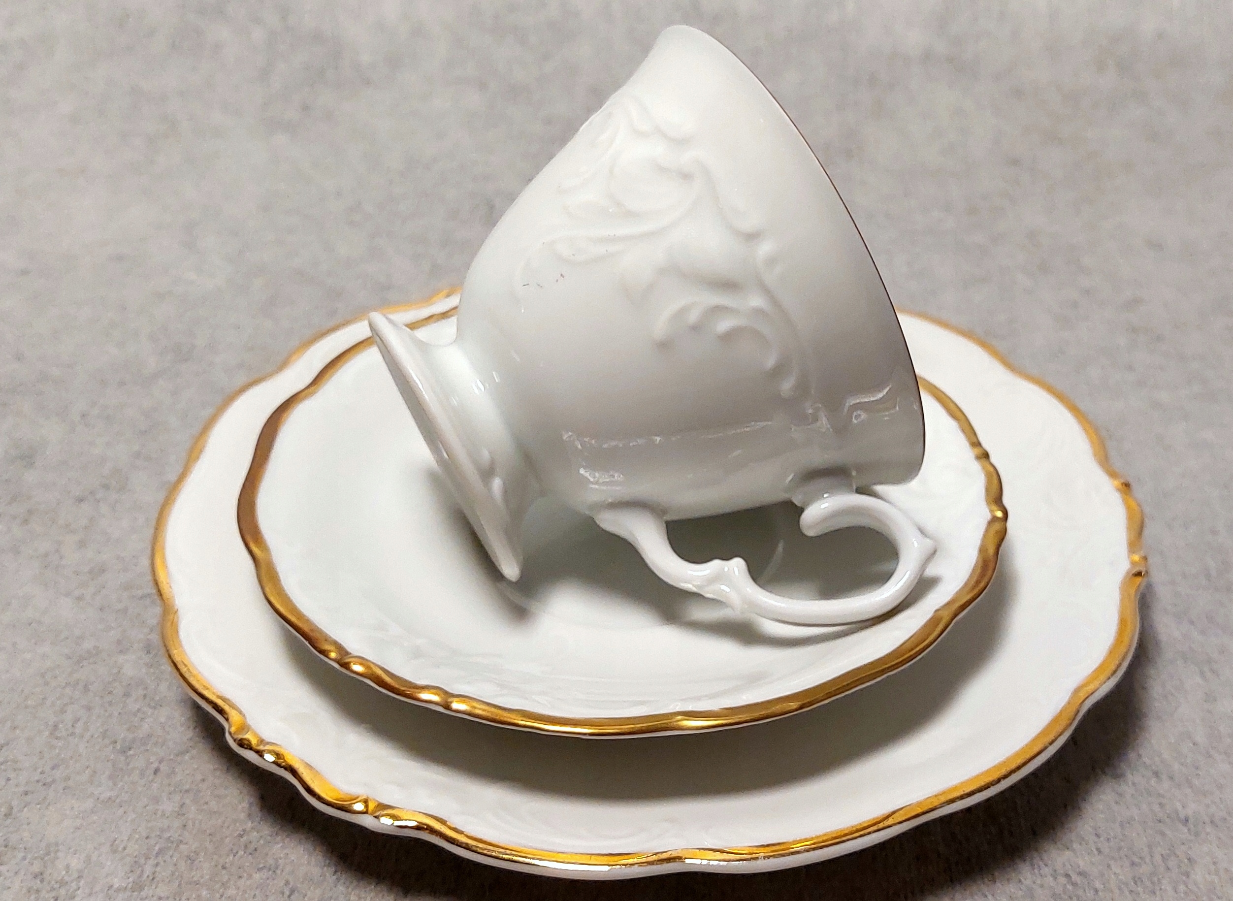 b>Біла порцеляна, красива форма чашки на ніжці, багато прикрашена рельєфами.