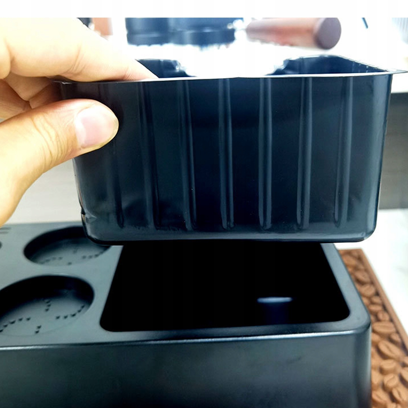 1. Преміальний ABS-матеріал: виготовлений із міцного матового чорного ABS-матеріалу, який легко чистити, ця кавова станція забезпечує довговічність і легке обслуговування.