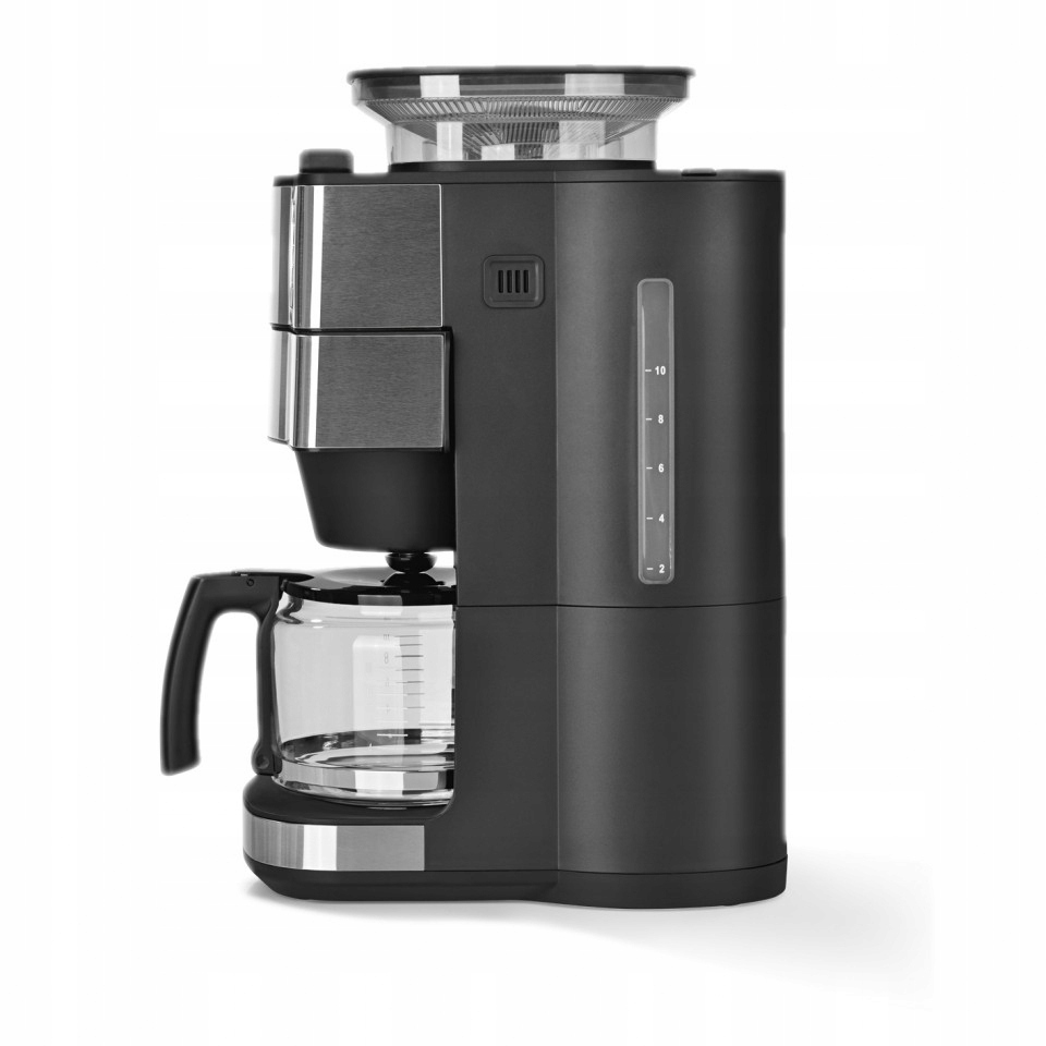 - Включно з термосом 1,25 л , в якому можна приготувати до 10 чашок кави, контейнер для зерен із кришкою для захисту свіжості вистачає на 180 г свіжих кавових зерен