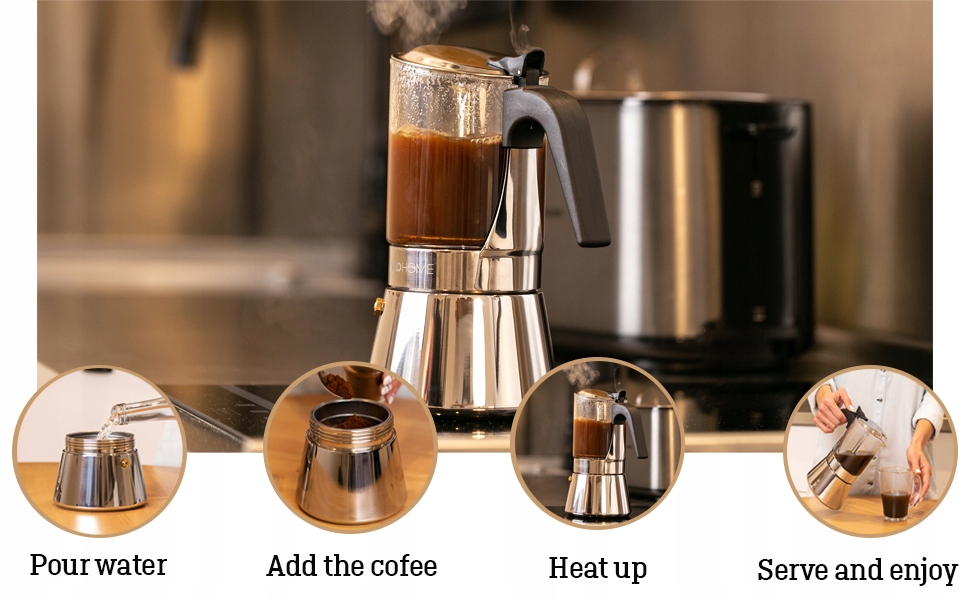 Компактний глечик 360 мл для ідеального еспресо - його місткість 360 мл дозволяє приготувати до 6 чашок необхідного еспресо. Ідеально підходить для тих, хто хоче насолодитися свіжою чашкою міцної моки в комфорті свого дому.