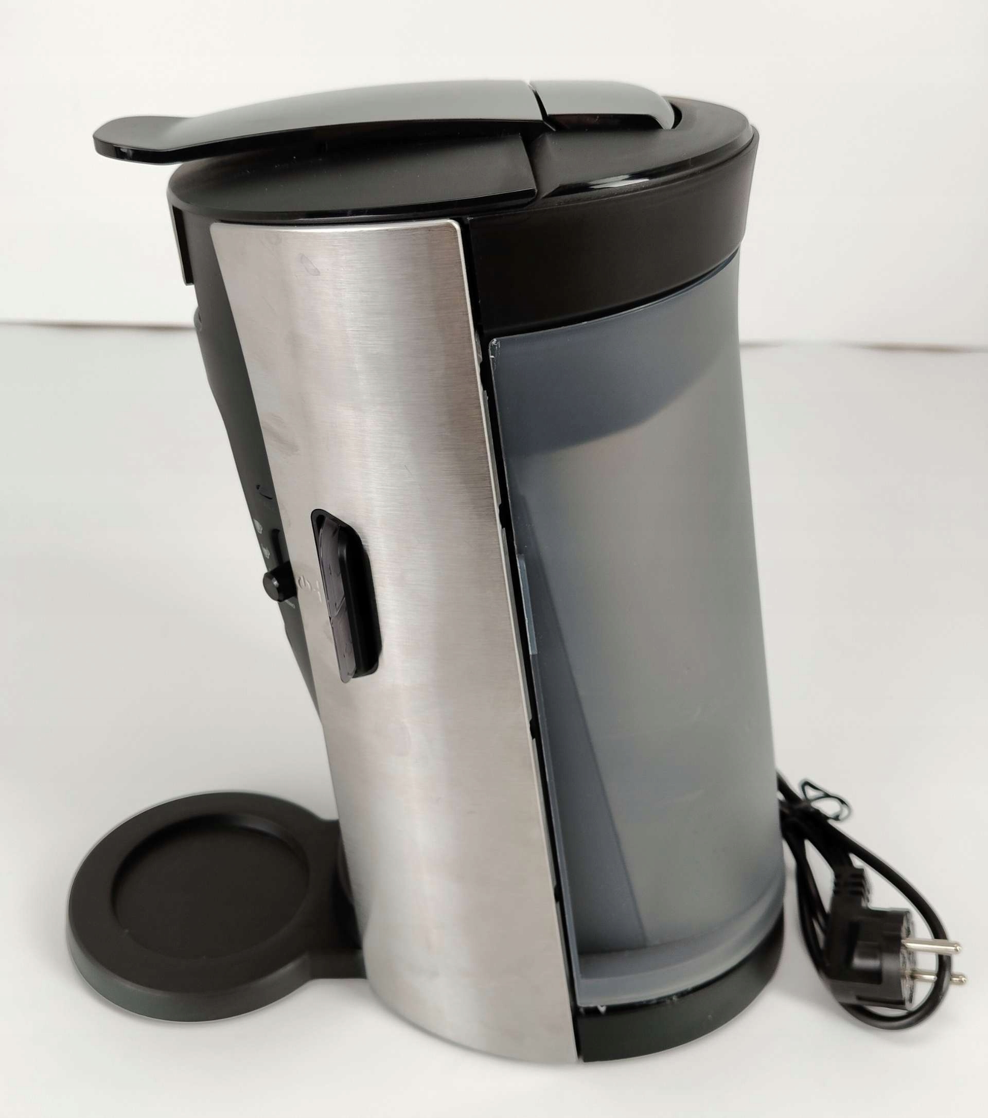 Кавоварка має подряпини на металевій підставці та пластиковій частині корпусу.