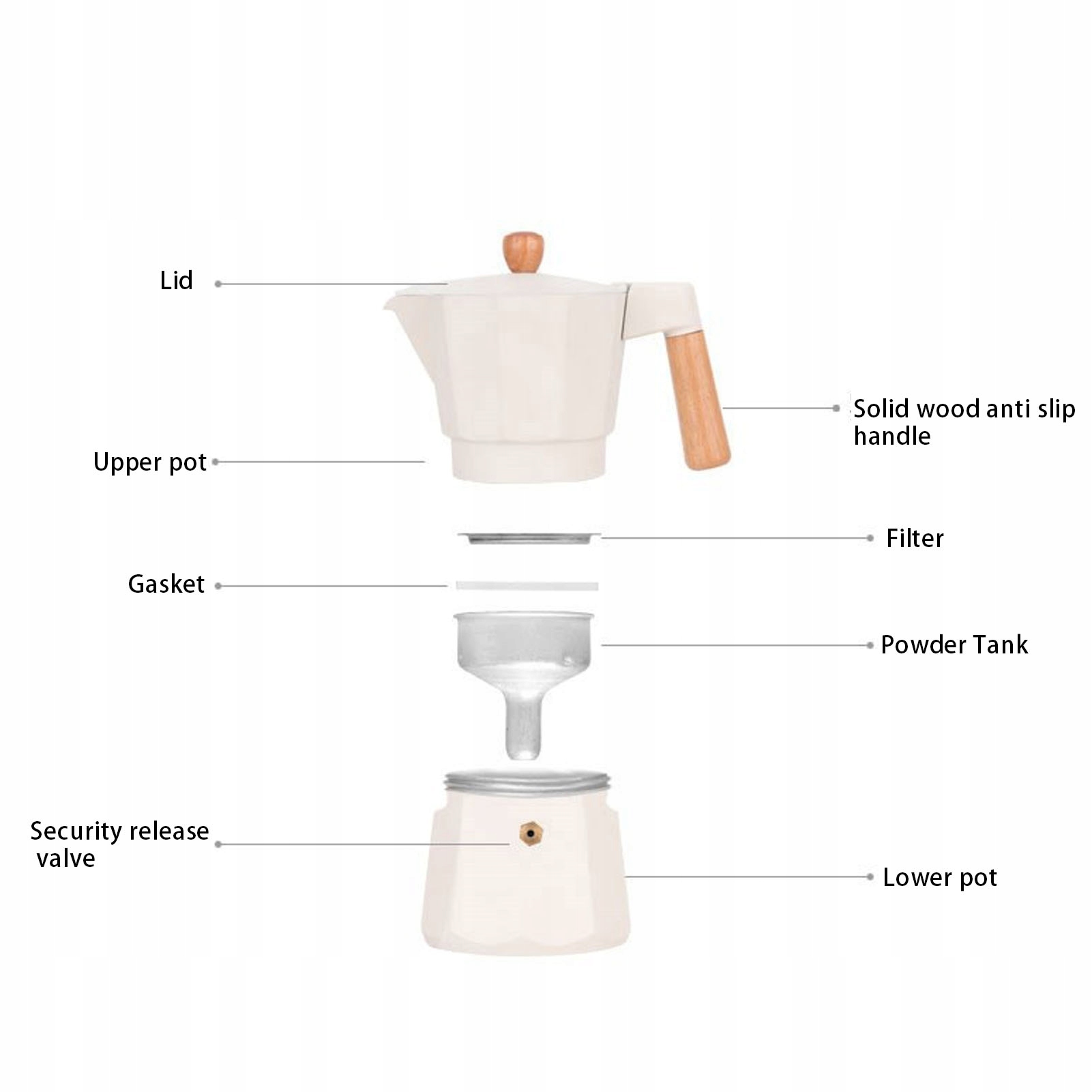 1. Рівномірний розподіл тепла: виготовлений із алюмінієвого сплаву преміум-класу, цей кавник забезпечує рівномірний розподіл тепла, що забезпечує насичений і м’який смак кави, який оцінять любителі кави.