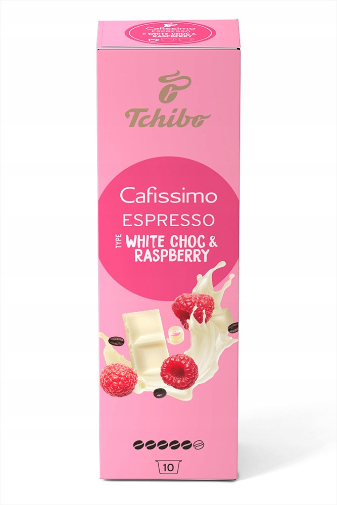 Tchibo cafissimo White Choc & Raspberry - це кава, яка вражає солодкими зі смаком білого шоколаду з шлангом малини. Ви будете готувати як еспресо, так і всі молочні страви - капучино, латте та багато інших! Цей обмежений смак капсул Tchibo був створений для весни, але ви можете насолоджуватися ним цілий рік. Tchibo Raspberry Coffee - Білий шоколад буде ідеальним доповненням до відпочинку, а в прохолодніші дні він згадає літні спогади.