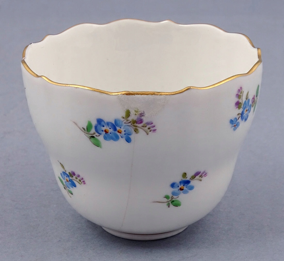 Пошкоджена троянда на кришці глечика та одна чашка відремонтована.