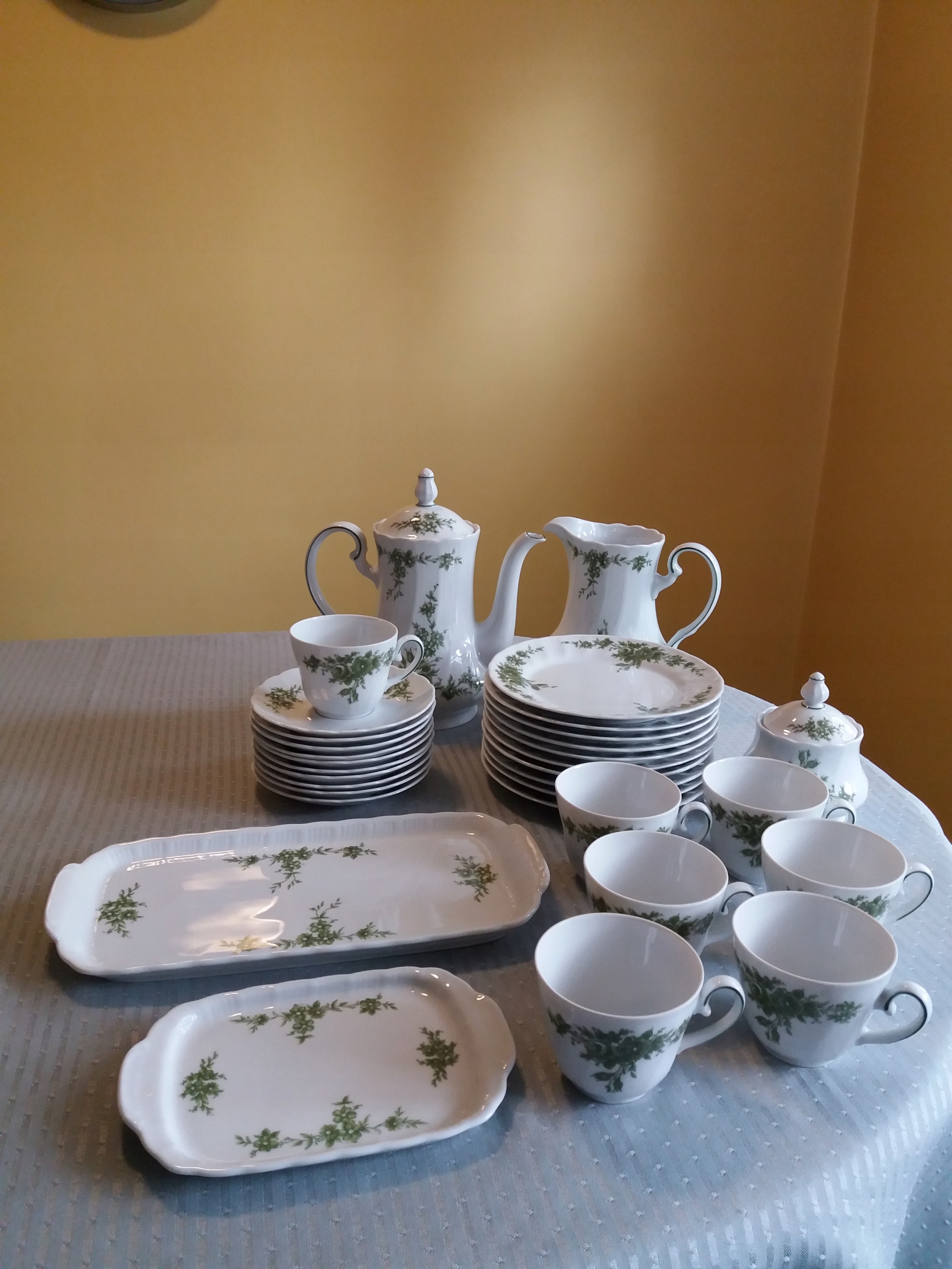 КАВОВИЙ СЕРВІС WINTERLING BAVARIA: ДІАМЕТР ЧАШКИ 8,5 СМ, ВИСОТА 7,1 СМ-7 ШТ., В ТОМУ ЧИСЛІ 1 ПОШКОДЖЕНА, ДІАМЕТР ПІДСТАВКИ 14,9 СМ-10 ШТ, ДІАМЕТР ТАРІЛКИ 19,3 СМ-10 ШТ, ДІАМЕТР ТАРІЛКИ 19,9 СМ * 13,2 СМ-1 ШТ., ДІАМЕТР ФОРМУШКИ 15,5 СМ * 31,8 СМ-1 ШТ., ДІАМЕТР ЦУКЕРНИЦІ 8 СМ, ЗАГАЛЬНА ВИСОТА 12 СМ, ЗАГАЛЬНА ВИСОТА ГЛЕЧИКА 24,5 СМ, ДІАМЕТР 10 СМ, ВИСОТА ГЛЕЧИКА 18,2 СМ, ДІАМЕТР 12,1 СМ * 9,5 СМ.