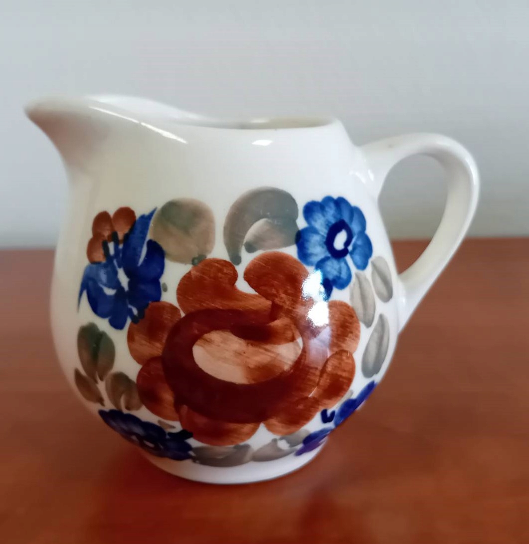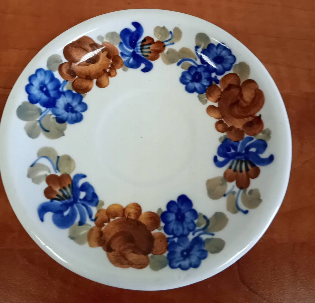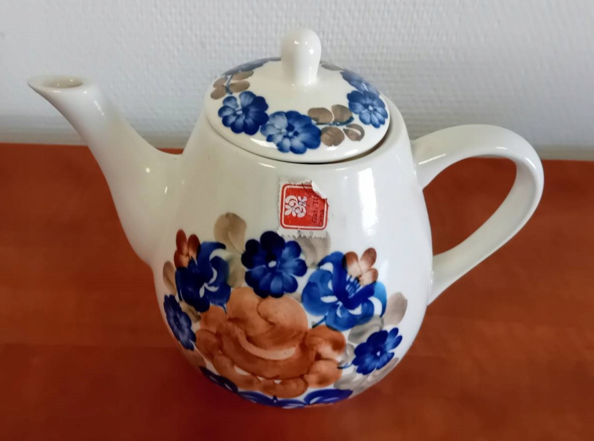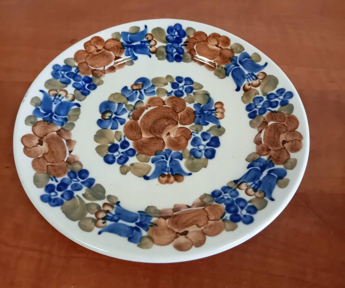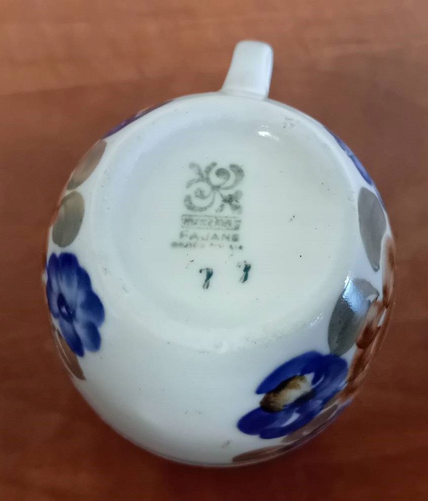 Глазурований фаянсовий кавовий сервіз прикрашений різнокольоровими квітами кобальтового синього, зеленого та коричневого кольорів