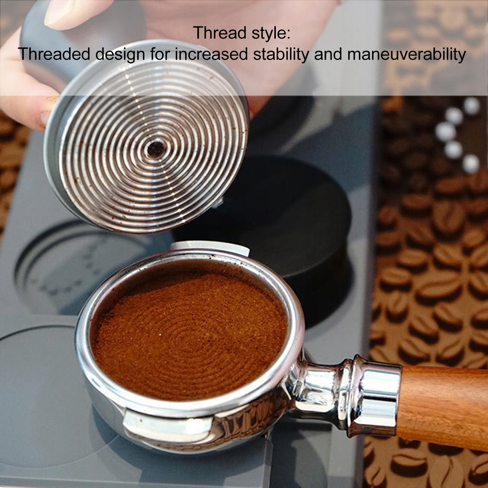 3. ПІДВИЩЕНА СТАБІЛЬНІСТЬ ТА КОНТРОЛЬ: Ретельно розроблений різьбовий малюнок не тільки підвищує стабільність трамбування під час використання, але також забезпечує міцне захоплення та покращений контроль, що ідеально підходить для досягнення рівномірного та постійного стиснення кавової шайби.