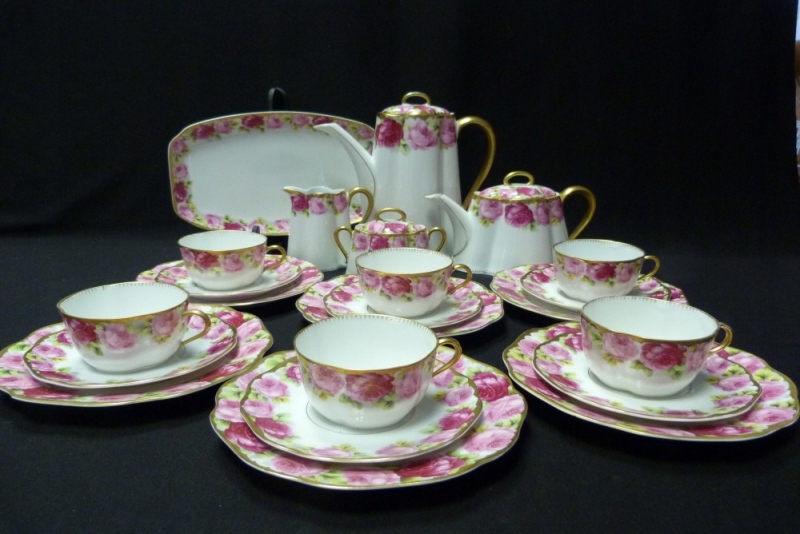 Чудовий кавово-чайний сервіз на 6 персон, виробництва Rosenthal Chrysantheme, модель Cecylia, періоду 1891-1904 років, виготовлений з високоякісної білої порцеляни, прикрашений квітковим декором, позолочений.Неймовірно, що сервіз давно збереглася в такій кількості і в такому хорошому стані.стан,але як нас запевнили сервіз був тільки у вітрині і не використовувався.Тільки воронка кавника має невеликий скол,навіть позолота мінімальна потертості.В наборі також є чайник,чайник що рідко зустрічається і тарілка.Цей набір - радість.для ока і для колекціонера. .Запрошую до покупки. Рекламна банка