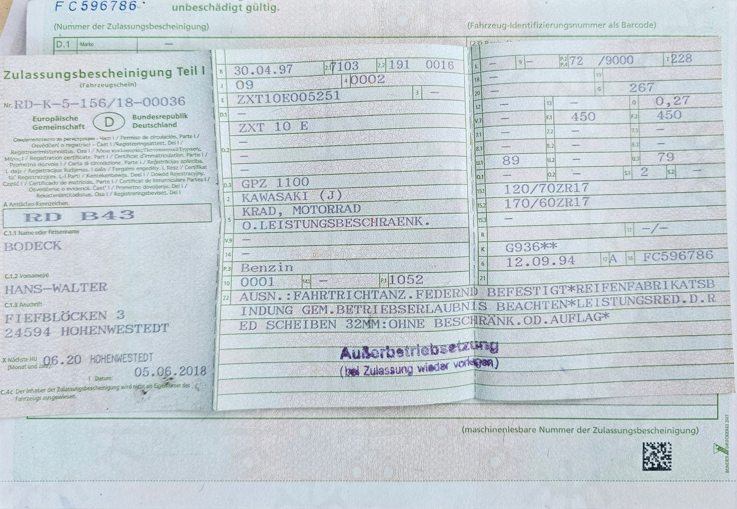 Kawasaki gpz 1100 90-01 Рама пряма, німецькі документи