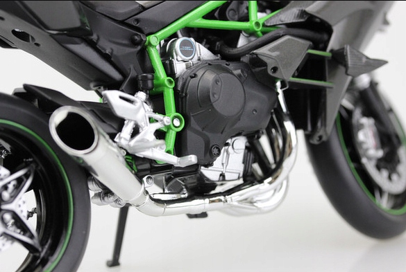 У нього є складна бічна підставка, тому, коли його зняти з підставки, він чудово виглядає на столі чи полиці колекціонера. Для моделі мотоцикла характерні рухомі елементи та увага до кожної деталі. Колеса мотоцикла обертаються, шини гумові. Фантастична копія справжнього мотоцикла!