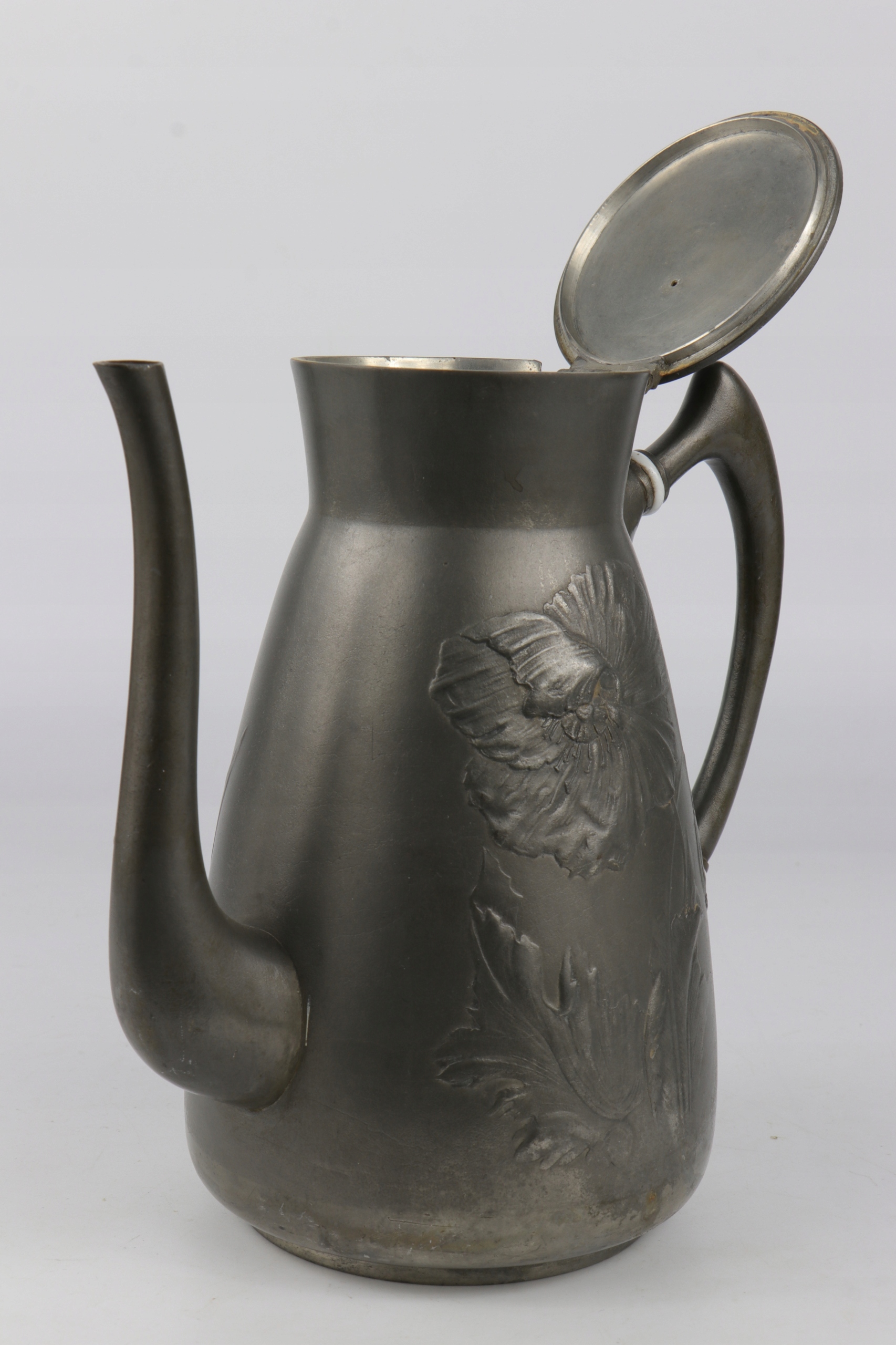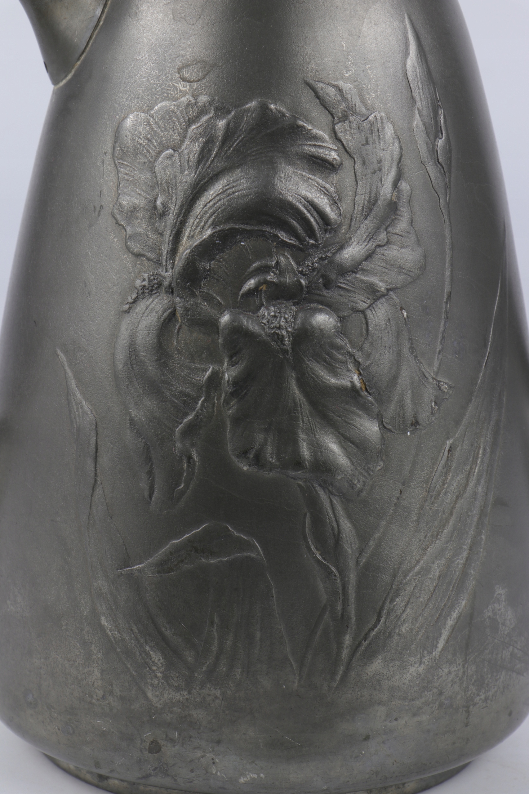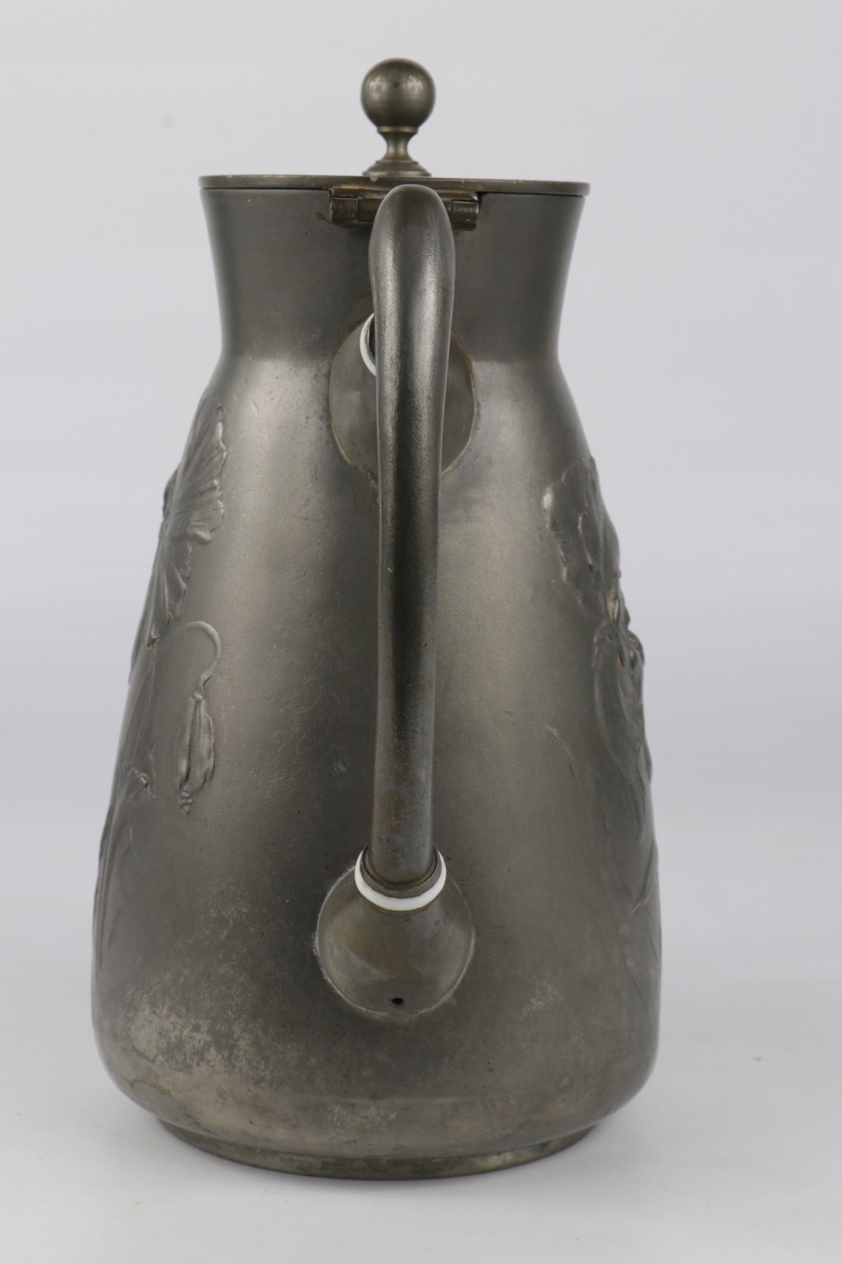 Kayserzinn Hugo Leven dzbanek 1898 ornament irysów i maków 4189