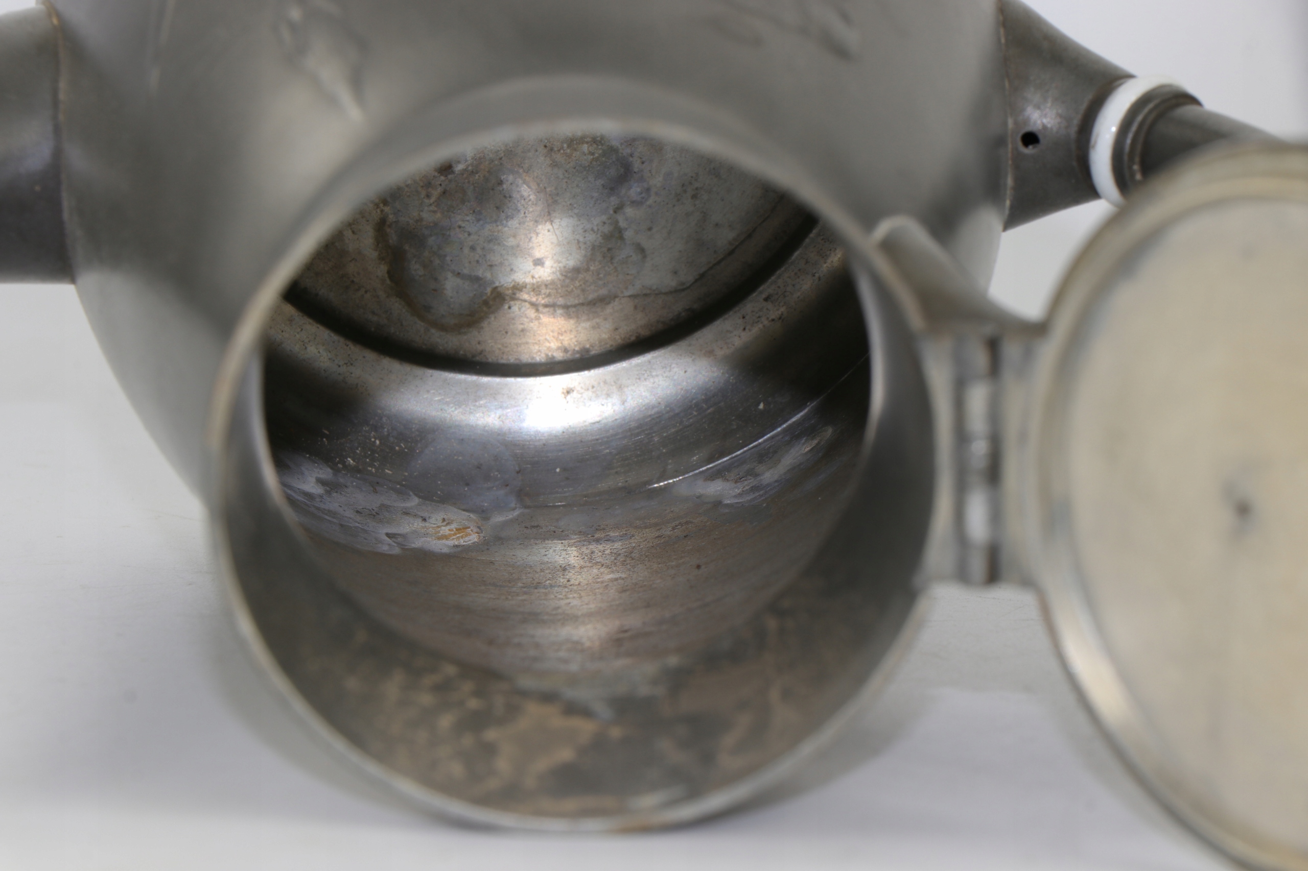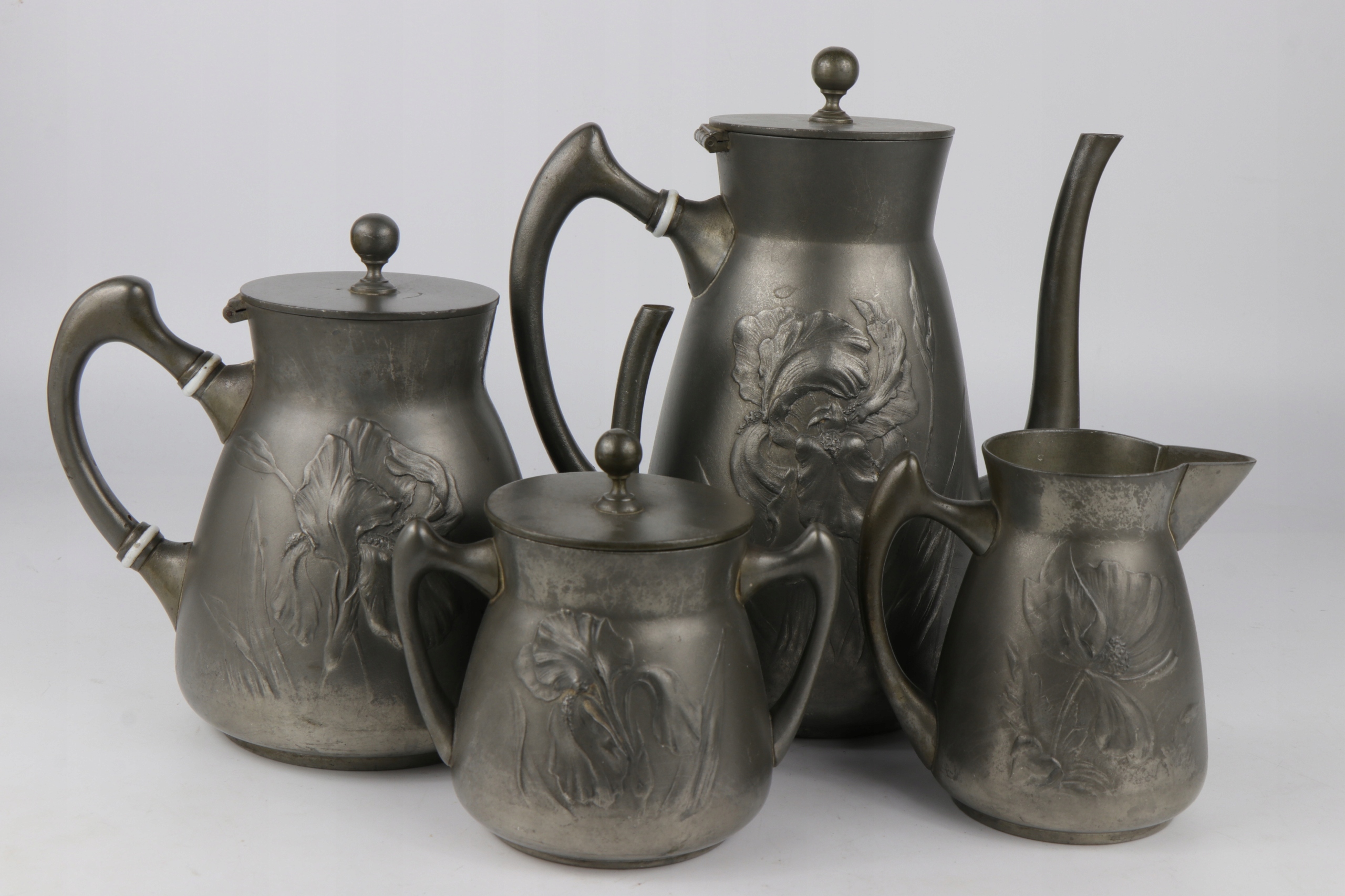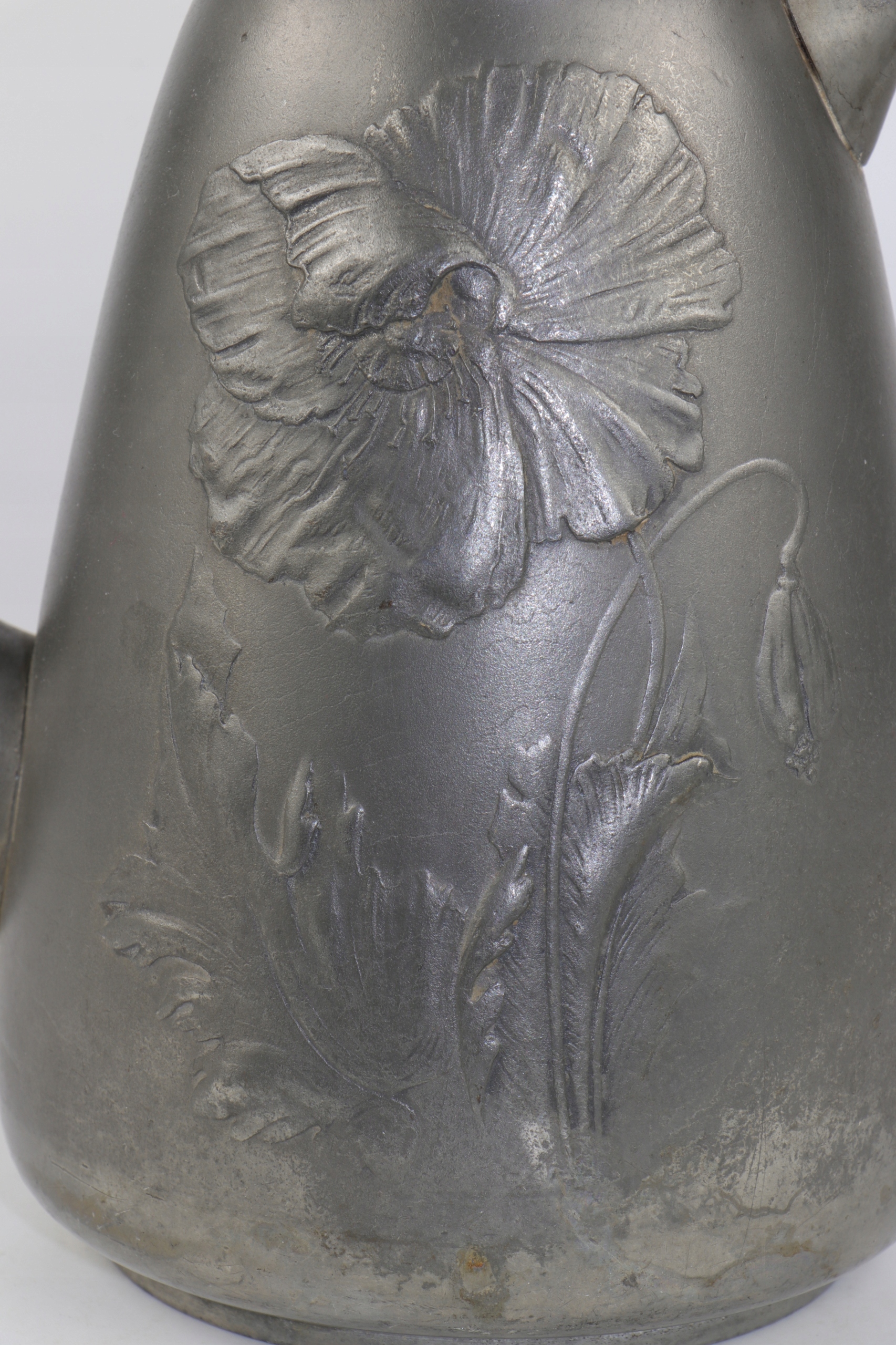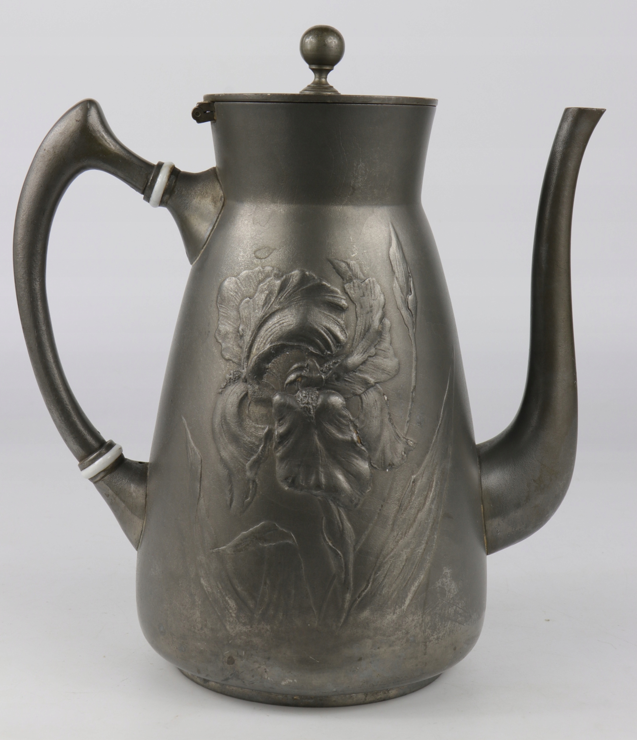 Kayserzinn Hugo Leven dzbanek 1898 ornament irysów i maków 4189