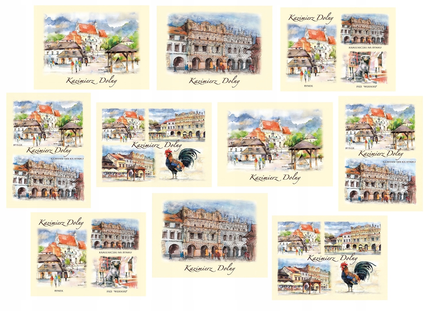 KAZIMIERZ DOLNY nad VISŁA мальовані листівки 10 шт