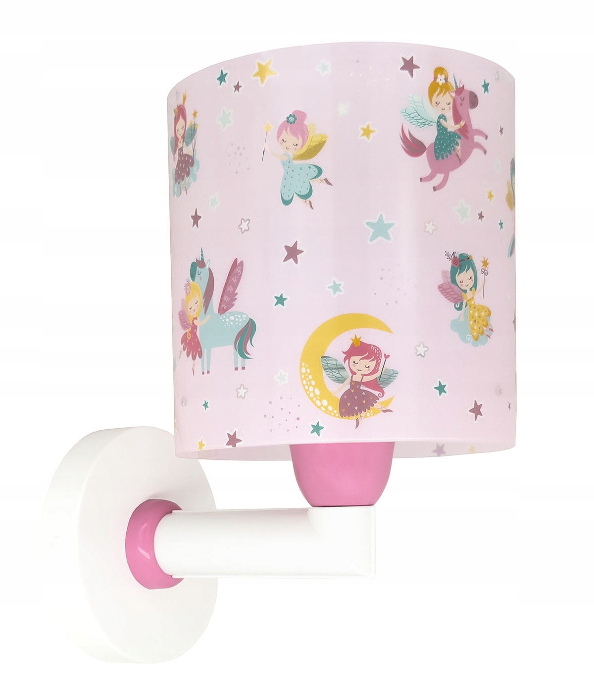 1 бал бра з пластику до дитячої кімнати з мотивом феї. Лампа має подвійний ламп. У нього є кабель з вилкою та перемикачем, який також може бути відокремлений і підключений безпосередньо до електричної установки.