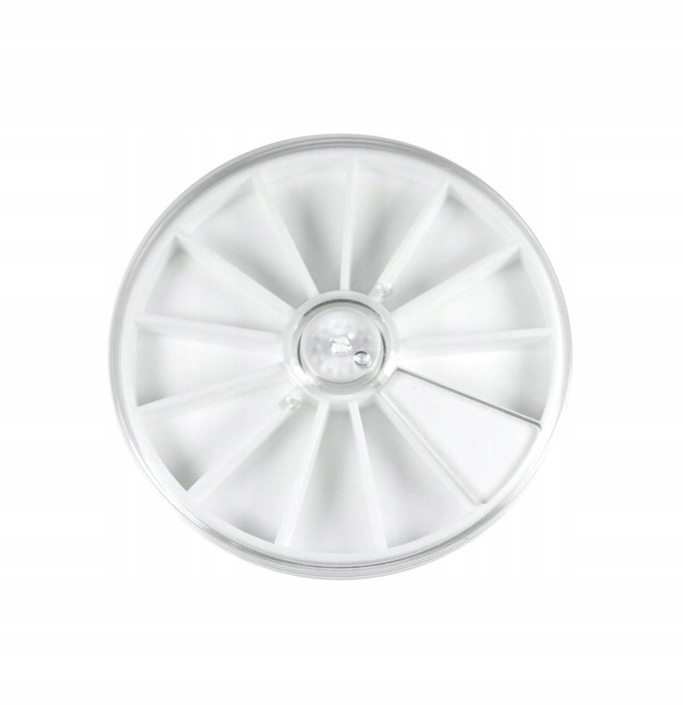 кам'яна коробка з 12 відділеннями та діаметром 58 мм має обертову кришку і виготовлений з пластику. 4 Ви відкриваєте лише обертову кришку, з якої потрібно вибрати прикрасу. Окремі дрібнички не змішуються з вами.