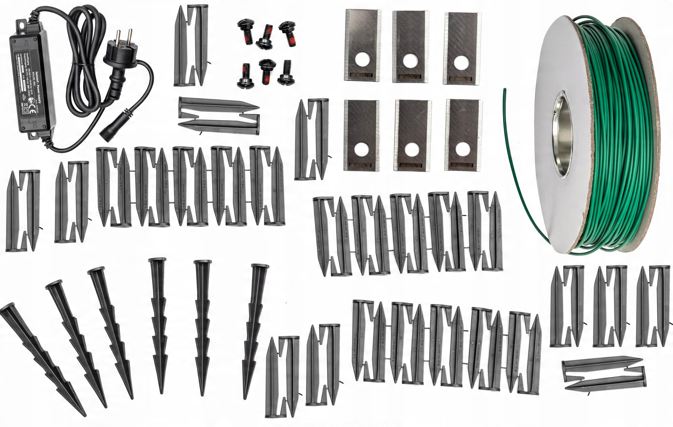 2 набори запасних ножів / 130м периферійного дроту / 180 кліпс та інше