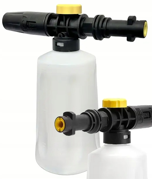 Піна оснащена bayonet роз'ємом, сумісним із ущільнювачами тиску з домашньої серії 🏠. Її потужність становить близько 700-750 мл , що дозволяє зручно та ефективно очистити більші ділянки ✅.