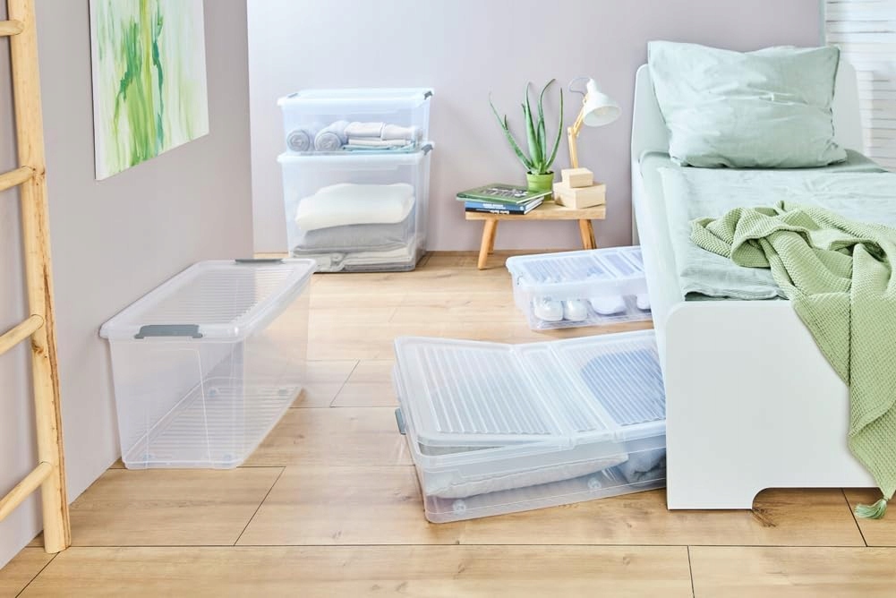 Отримайте більше місця та замовити у своєму будинку з контейнером Keeper Leo ! Ця практична, прозора коробка потужністю 33 л , була розроблена для зручного зберігання речей під ліжком або диваном. Ідеально підходить для зберігання постільної білизни, сезонного одягу, рушників, ковдр або іграшок .